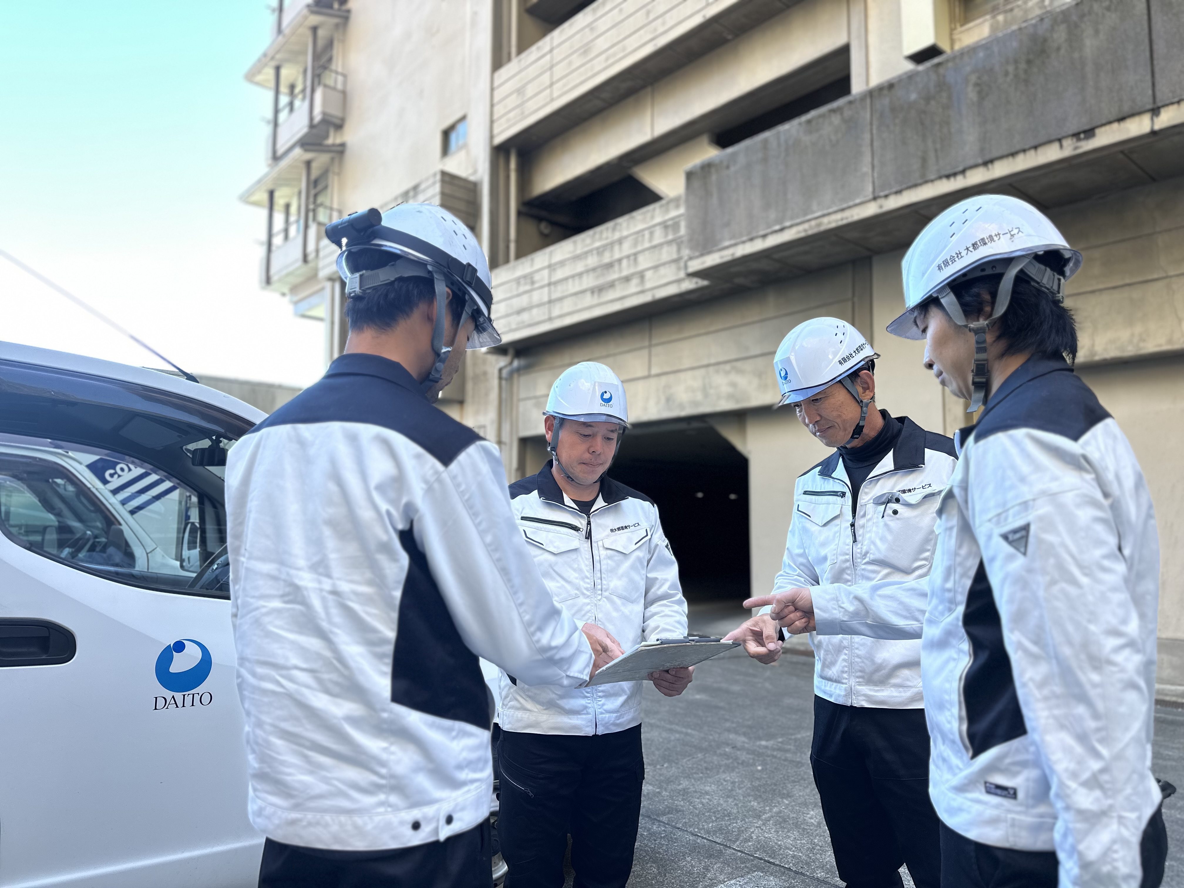初めは貯水槽清掃作業助手として働いてもらいます。チームで作業します。 帰社後 PCを使って写真の整理 簡単な事務作業 など |