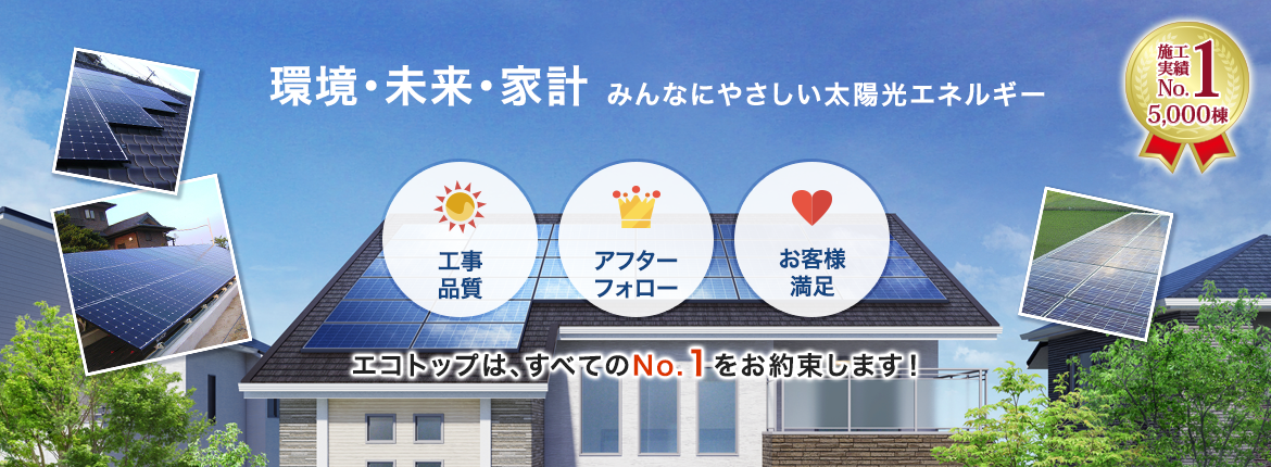 エコ・トップ株式会社は、住宅設備機器の販売会社として平成6年に創業し、和歌山県下でいち早く太陽光発電システムの施工販売を手掛け、再生可能エネルギーの普及に努める環境応援企業として邁進してまいりました。