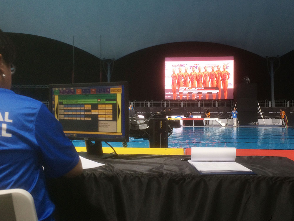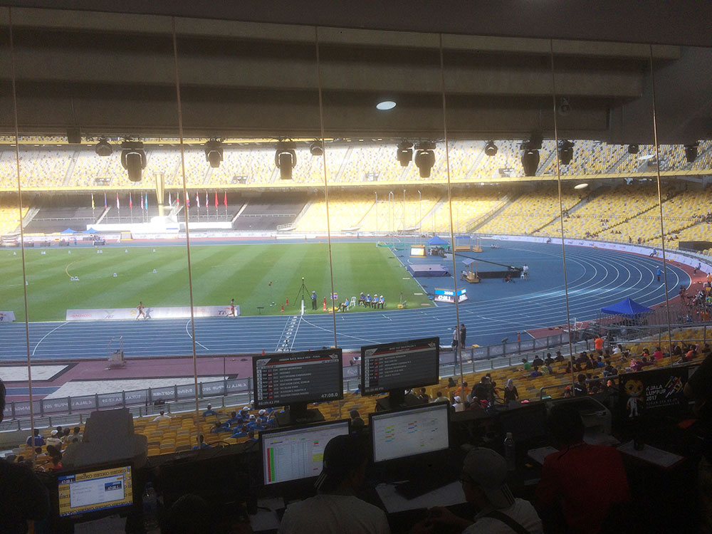 当社は陸上の世界選手権をはじめとする国際スポーツ競技会等の現場で使われるシステムを製作している他