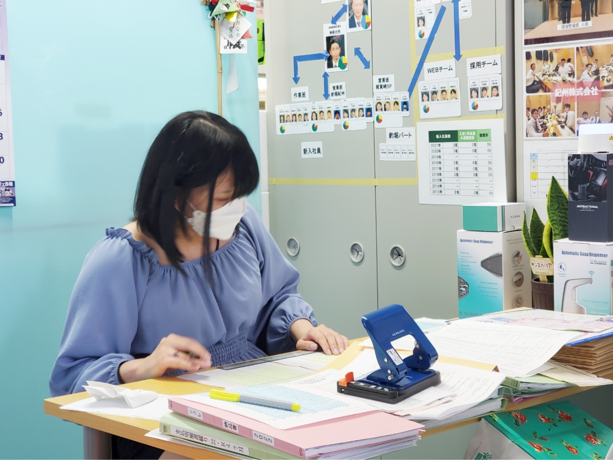 釣堀の営業がメインの会社のため男性が多い会社ではありますが、管理部販売サポート室はサポート業務や業務改善を行い、女性も活躍しております。