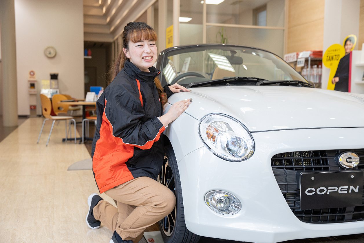 軽自動車の需要が益々高くなる中、特に和歌山は軽自動車の保有台数が多いので、軽トップブランドのダイハツに入社したいと思いました。会社訪問での先輩スタッフの働きぶり、接客応対で更に気持ちは強くなりました。